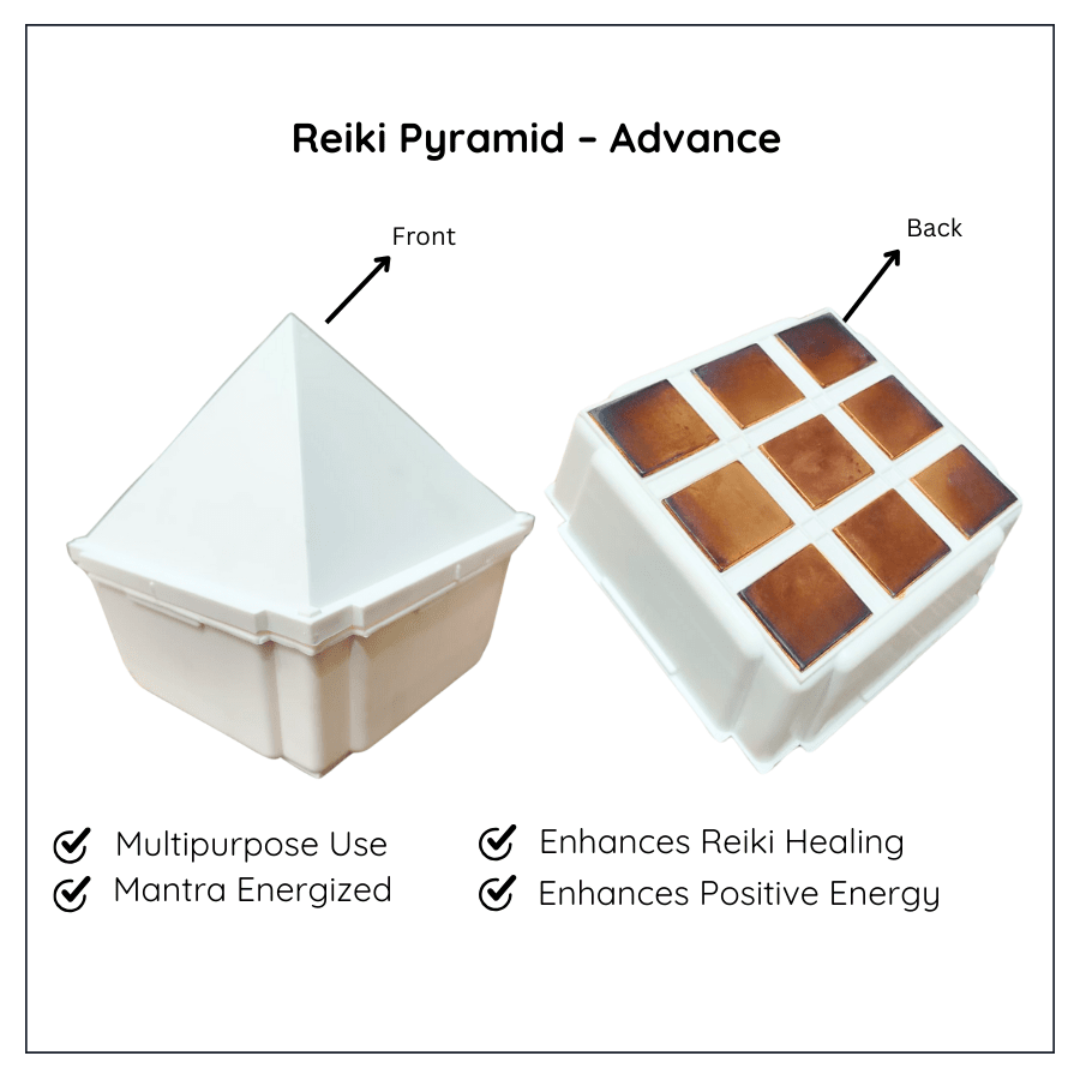 An advanced Reiki healing pyramid designed to promote emotional calm, mental clarity, and balanced energy flow.